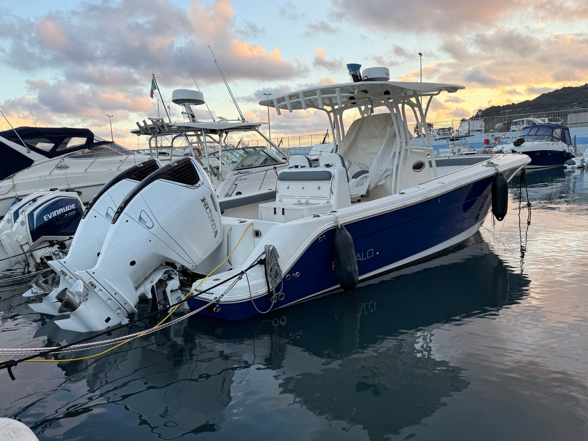 La barca "AXILLO" è un Robalo R300 motorizzato con due Honda BF 350! È una delle barche a noleggio più belle e veloci della città, il che significa che avrete più tempo per pescare con le lenze in acqua; la pesca al pesce spada fa parte delle nostre specialità, ma peschiamo praticamente qualsiasi cosa: drifting al tonno, traina col vivo, traina d’altura e traina costiera..pesca ai calamari di notte e ai totani di profondità. La barca è dotata di tutti i dispositivi elettronici Garmin e di un impianto audio Kicker. Per quanto riguarda i posti a sedere, c'è un pozzetto a prua di grandi dimensioni, due sedie da capitano, due sedute rivolte a poppa e una panca rivolta a prua. La barca può ospitare un massimo di 12 persone (6 persone che pescano e 6 come accompagnatori compreso me). Assicuratevi solo di portare un abbigliamento in linea col periodo che si fa l’uscita, cibo e bevande di vostro gradimento. In alternativa è possibile prendere direttamente a bordo bibite e snack.